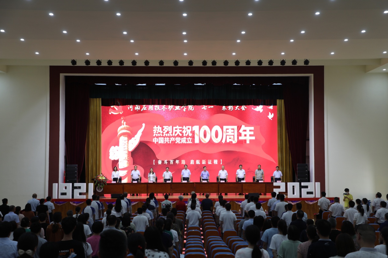 闫俊山指出,百年风雨,百年辉煌,中国共产党走过了整整一百年的历程。我们党开辟了伟大道路,建立了伟大功勋,铸就了伟大精神,积累了宝贵经验,创造了中华民族发展史、人类社会进步史上令人刮目相看的奇迹。实践充分证明,中国共产党不愧是中国革命与建设的中流砥柱,不愧是中国特色社会主义事业的中流砥柱,不愧是中华民族走向伟大复兴的中流砥柱。沐浴着党的阳光,伴随着时代的脚步,河南应用技术职业学院也走过了六十五年的光辉历程。在省委高校工委、省教育厅的坚强领导下,学校各级党组织和广大党员干部励精图治、发奋图强,用自己的勤劳、智慧和汗水,推动学校发生了翻天覆地的巨大变化,创造了无愧于历史的非凡业绩。