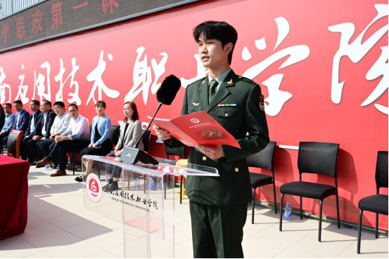 在校生代表结合自身成长经历,分享了从懵懂新生到国赛金奖的蜕变历程,以“三个感恩”表达心声:感恩学校的培养平台,感恩师长的悉心教导,感恩同窗的互助友爱,鼓励新同学勇于尝试、敢于追梦。新生代表讲述了对大学生活的憧憬与规划,表示要将军训中培养的优良作风带入今后的学习生活,以“青春之我”书写“奋斗之我”,努力成为担当民族复兴大任的时代新人。教师代表深情寄语,希望新生们既要仰望星空,树立远大理想;又要脚踏实地,练就过硬本领,在应院这片沃土上茁壮成长。